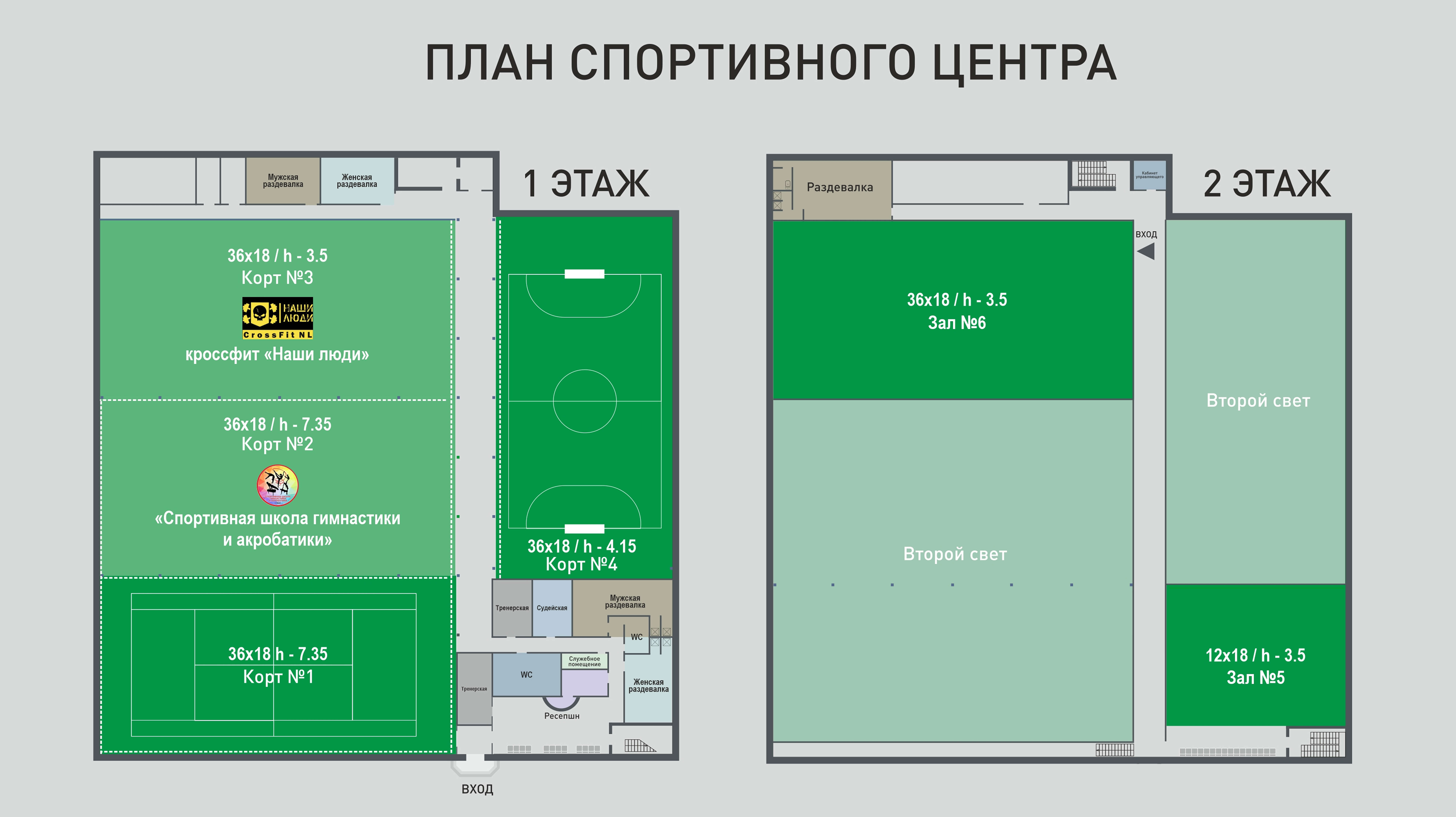 Спортивный центр «Гринн» — современное пространство для тренировок, соревнований и активного отдыха. Мы предлагаем направления для детей и взрослых, любителей и профессионалов. Центр оснащён раздевалками с душевыми, тренерскими и комнатами для судей.